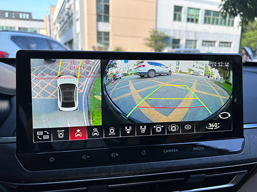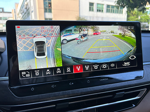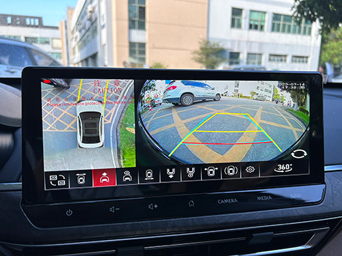通过安装在车身前后左右的 4 个超广角摄像头,同时采集车辆四周的影像,经过图像处理单元畸变校正、拼接和融合后,形成一幅车辆四周的 2D 及 3D 全景图,并通过车载显示屏显示,帮助汽车驾驶员更为直观、更为安全地停泊车辆。