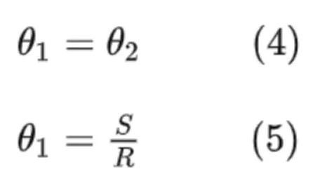 通过对左右两侧轮脉冲系数标定得到左右两侧车轮行驶距离,如式(1)(2)所示,可得车辆后轴中心行驶距离如下:S=SL+SR2 (3)S=\frac{S_L+S_R}{2}