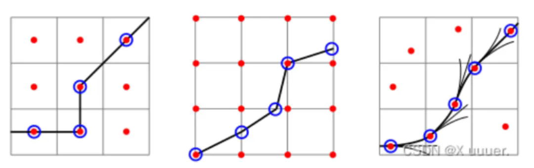 Hybrid A*是连续坐标系下进行启发式搜索,基于网格地图,挑选满足车辆3d连续状态点并将损失值赋值给该点,即Hybrid A*的搜索空间不仅考虑了x,y方向的拓展,还考虑了航向角方向的探索能够保证生成的轨迹满足车辆动力学约束。