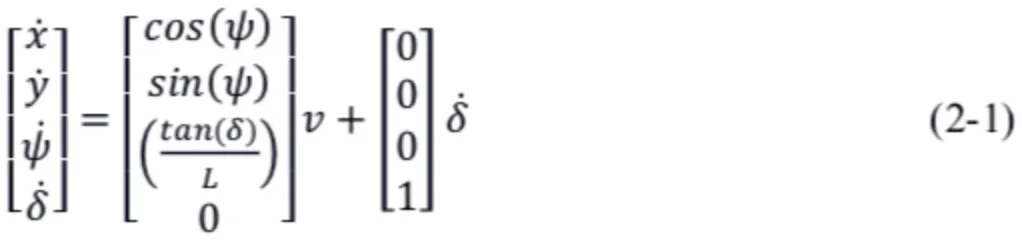 因此,根据运动学方程,可得到前轮转角�为: