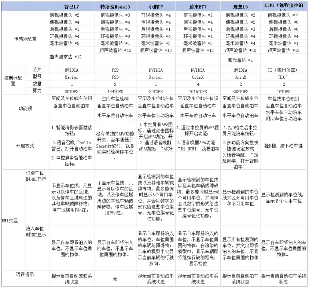 近年来,各大主机厂加大对自动泊车系统的投入力度,纷纷推出搭载自动泊车系统的车型, 国内新车自动泊车前装渗透率持续上升。数据显示, 2022 年 1-5 月,国内新车 APA 搭载量达 95.7 万辆, APA 渗透率达到13.6%。2021 年,国内新车 APA 搭载量达 243.7 万辆, APA 渗透率达到 11.9%, 同比增长 17.8%。下面将几家主流主机厂的自动泊车搭载信息进行对比: